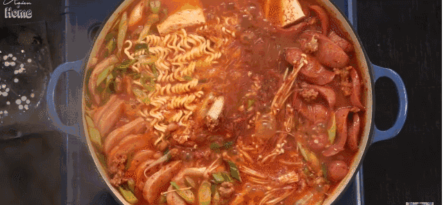 而口味不佳的各種罐頭也在韓國人民的不斷創新中,逐漸形成了火鍋的吃法,這種簡單便宜,而且能提供大量能量的料理很快就在民間推廣開來。部隊鍋並無特定的組合方式,各類蔬菜、麪條、年糕、泡菜等都可以加入其中,不過傳統的部隊鍋最重要的主菜就是來自美國兵營的斯帕姆午餐肉,再加上足料的辣醬湯,一鍋煮開就是熱騰騰的火鍋了,不需要多少時間就能為一家四口提供一頓熱食。