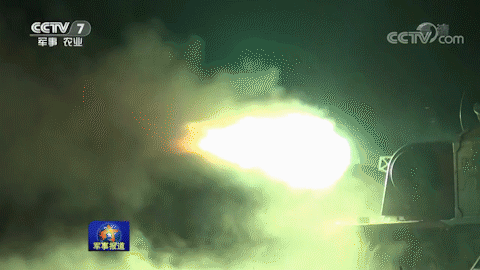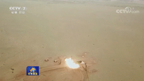 紅旗-6A彈炮合一系統中7管30毫米近防炮開火的畫面