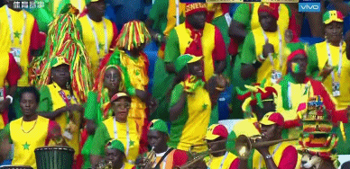 鏡頭給到了場邊載歌載舞的塞內加爾球迷。