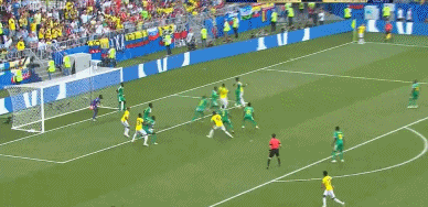 第13分鐘,哥倫比亞大禁區前右側獲得一個位置不錯的定位球,金特羅主罰的任意球飛過人牆空隙後直奔死角,皮球被反應神速的哈迪姆-恩迪亞耶側身撲出。
