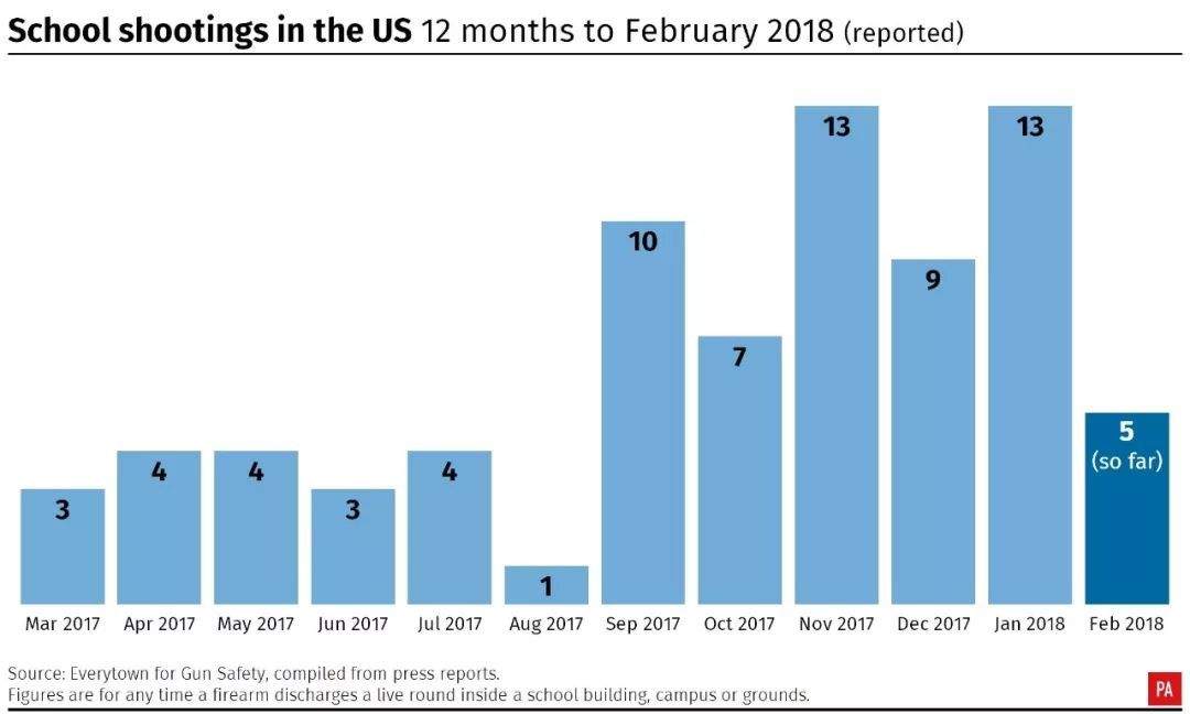 就在一個多月前,5月18日,美國德州休斯敦的聖塔菲中學發生了一起重大校園槍擊案,造成9名學生和1名老師死亡,《華盛頓郵報》當天發佈的最新報告顯示,截至目前,2018年美國死於槍擊的學生比傷亡的軍人還多。
