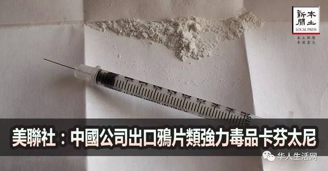 美聯社證實,中國多家公司公開出口能造成吸毒者死亡的超強效毒品卡芬太尼(carfentanil),這種毒品有潛在的恐怖主義威脅。