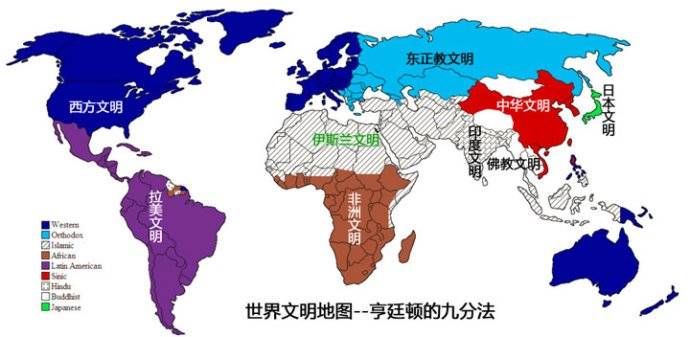 特別提示,第三張圖是文明地圖而非國家地圖,所以朝鮮韓國越南被劃分為中華文明,西藏沒有。當然,本人並不認同這種劃分法。
