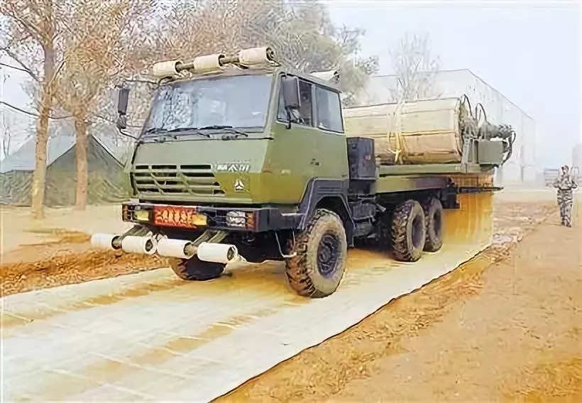 正常鋪路車有履帶式也有輪式,輪式鋪路車一般選擇從出發點倒車往前鋪,這樣可以把鋪路材料當成自己的履帶