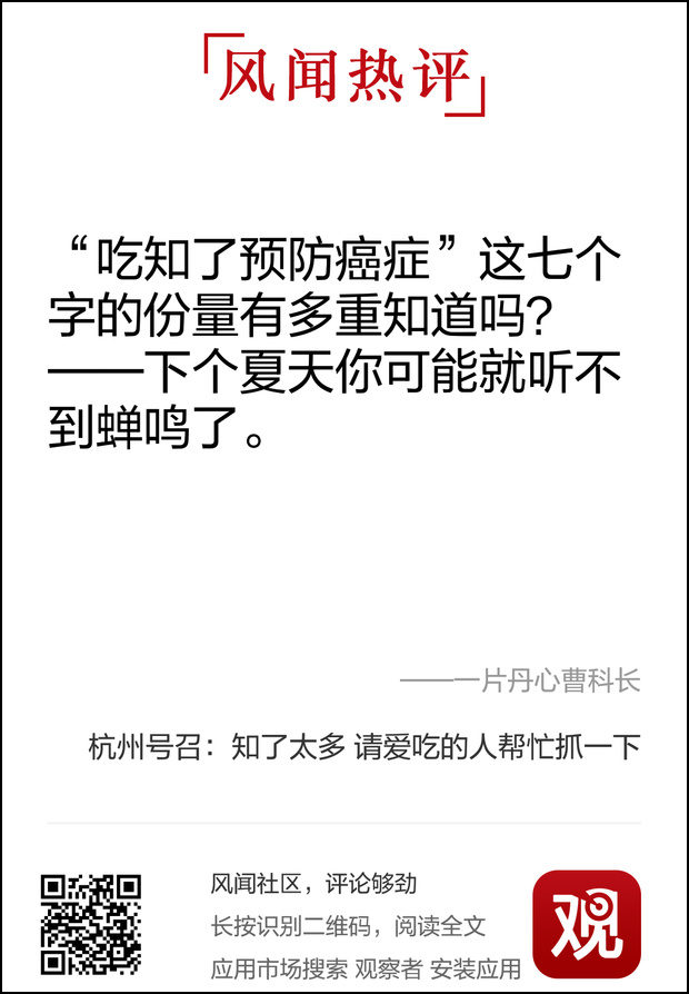 央視新聞7月10日報道,杭州綠化管理站號召:“杭州知了太多,請愛吃的人幫忙抓一下。”