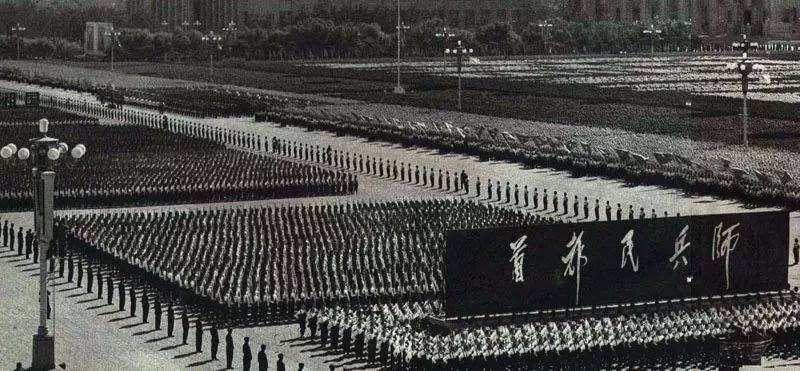 在1958年國慶節的閲兵式上,由工人、農民、學生組成的眾多民兵方隊出現在受閲隊伍中,他們僅訓練了20多天就參加了國慶閲兵,成為閲兵式上一道獨特的風景線。