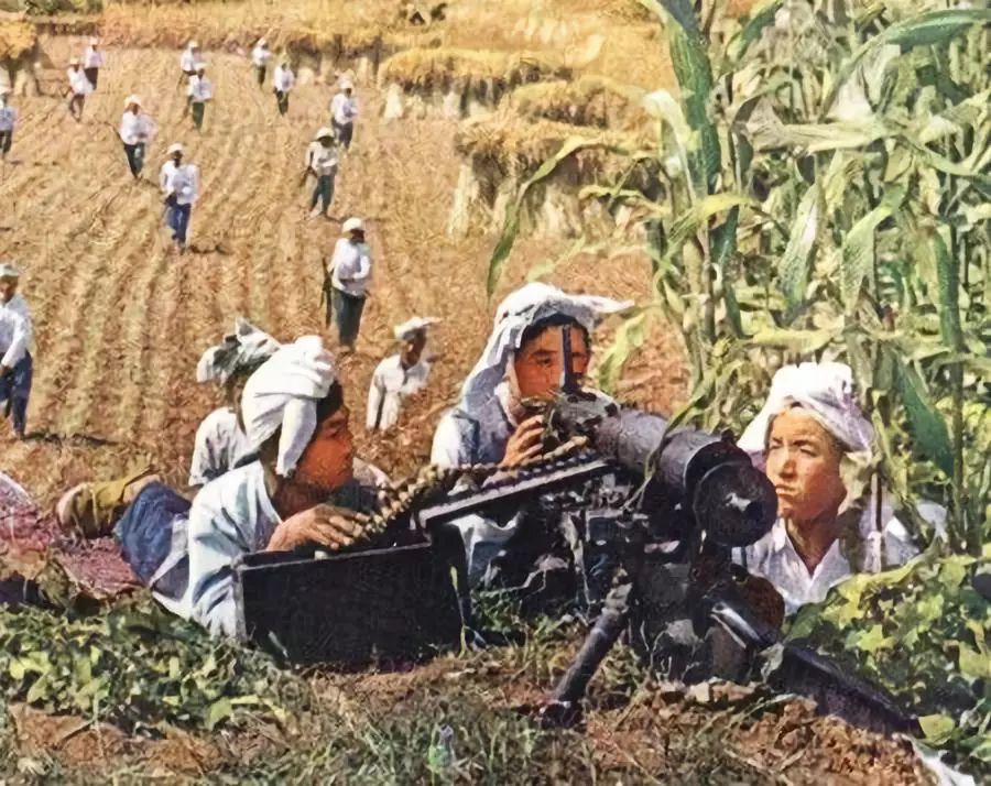 也就是説,只是能拿得動武器的青壯年,基本都要加入民兵,名副其實的全民皆兵——“把槍給大家背起來,一人發二三十發子彈,遍地皆兵,什麼帝國主義打來也不怕。”3000萬人,無論是直接參戰,還是作為後備兵源,都是一支令人生畏的力量。