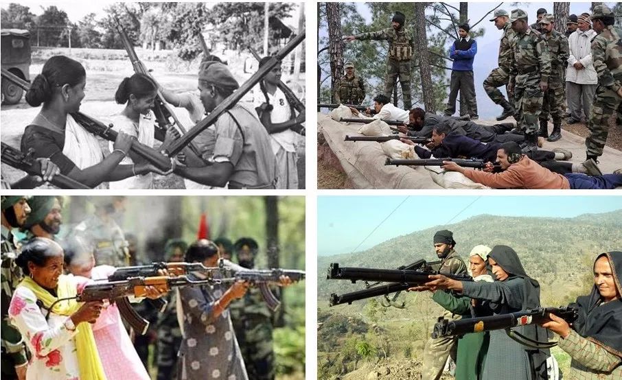 作為對比,印度好像被曾經的宗主英格蘭鎖死了科技,只會拿槍比人老的李恩斯菲爾德給民兵用,停留在中國五十年代的水平……而且,把老太太和社會地位等於零的婦女也拉進來,她們真的能打仗嗎?可不是哪個國家都能學中國的哦!