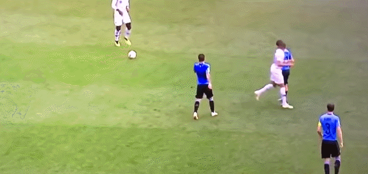 小夥在打烏拉圭的時候耍詐,吃過一張黃牌