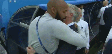 比利時助教、也是法國名宿亨利與法國主教練德尚擁抱致意。