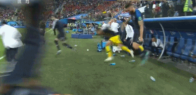 補時階段巴舒亞伊登場換下沙茲利,比利時準備發起最後的狂攻。第93分鐘,姆巴佩拖延時間吃到黃牌。