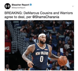 金州勇士隊,再次被媒體推上風口浪尖的起因是:德馬庫斯·考辛斯接受1年530萬美金的合同加盟勇士隊。由此,勇士隊湊齊了以庫裏、湯普森、杜蘭特、格林、考辛斯為首發的巔峯期全明星首發陣容。
