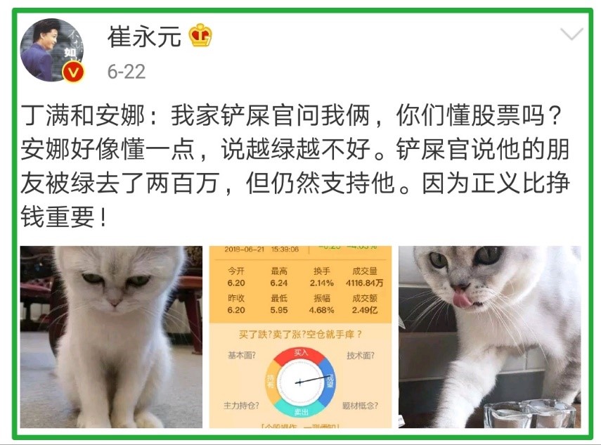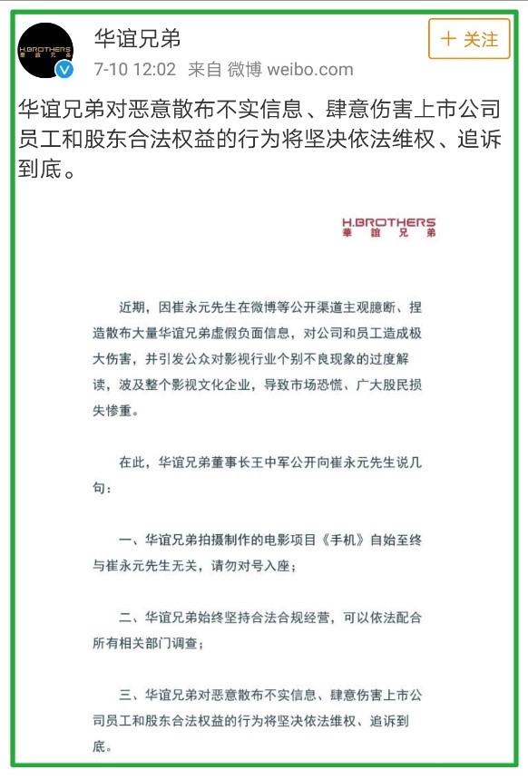 崔永元的戰鬥力爆表,對華誼兄弟、唐德影視、光線傳媒等影視公司的股價造成了巨大的壓力,甚至隨着“戰線”的拉開,越來越多的娛樂圈和金融圈人士紛紛被“入戰”。而崔永元似乎並沒有停手的意思,反而做好了打一場持久戰的準備。