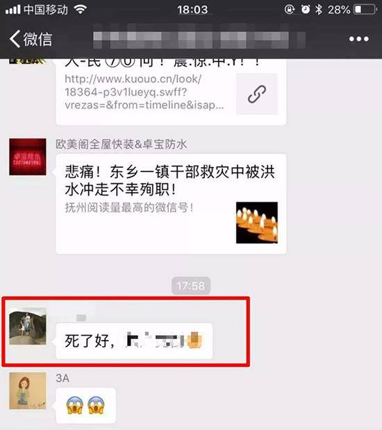 微信羣辱罵抗洪殉職幹部並稱“願做漢奸”,江西男子被拘6日_風聞