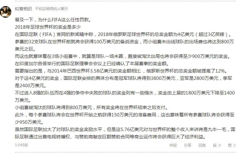 網友“似曾相識”的這個補充很好,是一個理解國際足聯罰款方面的很重要的參照: