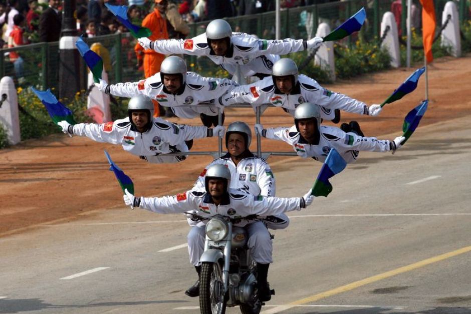 這麼看來,摩托車還真不是誰都能玩的好的。摩托車表演方面的超級大國當屬印度,人家不單單不撞車,一輛車還能運上一個班的兵力。