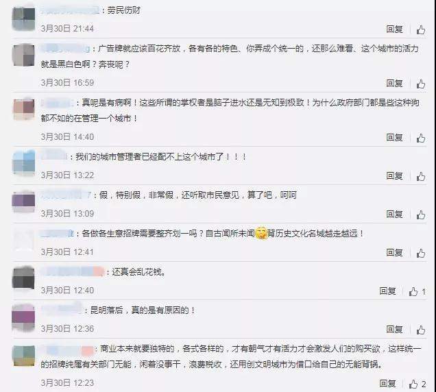 在這裏大家都強烈呼籲有關部門能夠重新思考這個問題,讓更多對美學研究專業的人蔘與進來,一起創造出更加具有創意新的店招設計。從而達到提升城市形象的目的。這樣的舉措,不但在提升國民審美,也是在幫助國家的設計行業進一步蓬勃發展。