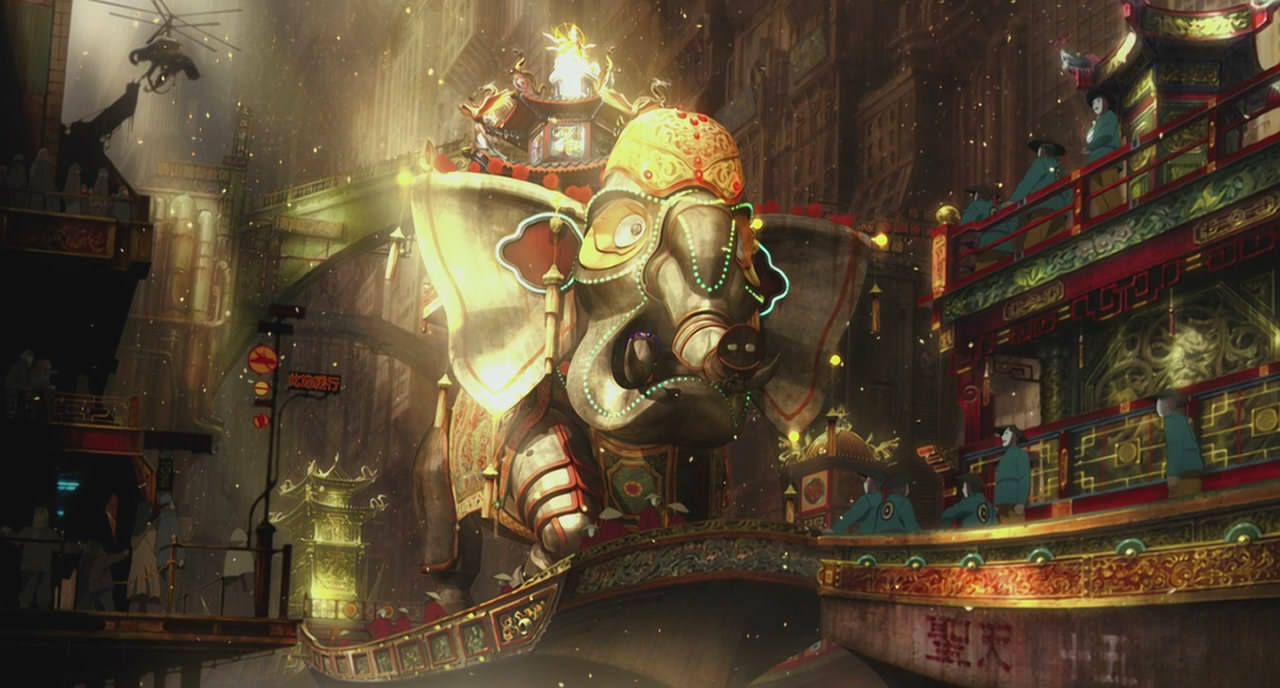 這6首曲子中最為知名的恐怕要數《傀儡謠-諸神集新世》。這支歌曲所配合的畫面是極具藝術感和文化感的一組長鏡頭,描繪的是近未來的中華祭典,奢華的閩南道教建築搭配破敗的未來鋼鐵叢林。歌曲前半段為緩慢詭異的歌謠,與祭典中各類機器人緩慢搖晃的前行相稱,而當巨型的四大金剛和哪吒三太子機器人出現時,人聲被猛烈而沉重的太鼓聲所替代,給人以巨大的壓迫和震撼感。這首音樂也使該片段成為動畫電影史上的經典。