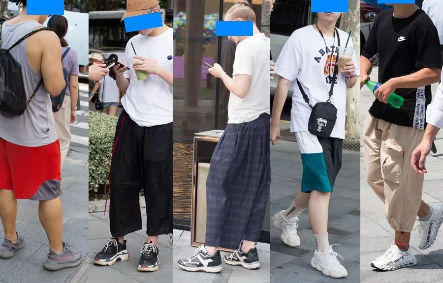 還有不分春夏秋冬的口罩,以及今年在淮海路走三步能看見一件的 冠軍 T 恤……讓我很恍惚,那些大夏天堅持三件套西裝的精緻男都哪去了?——樂刻,上海街拍 5 年
