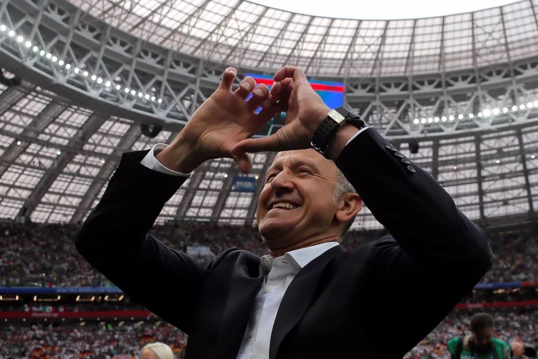 俄羅斯隊進第1個球時,普京尷尬攤手,並與薩勒曼握手以示友誼第一比賽第二。