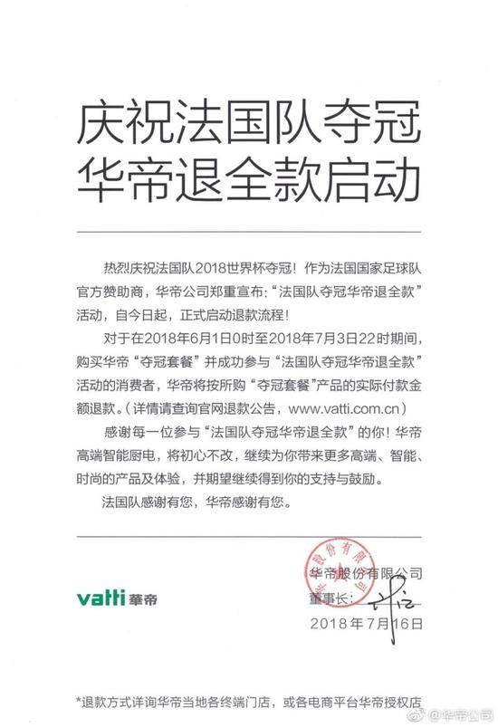 法國隊奪冠,華帝真啓動退全款了!營銷期間賣了7900萬_風聞