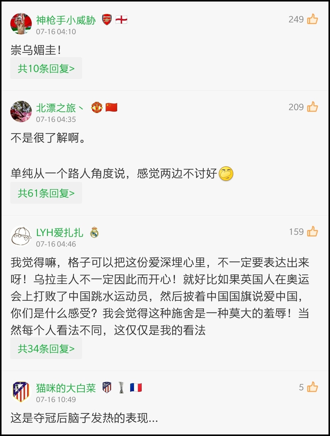 (因為當年發掘自己的伯樂是烏拉圭人,而烏拉圭陣中又有多位格里茲曼的俱樂部隊友,因此格勒茲曼常説自己是半個烏拉圭人。八強賽對陣烏拉圭前“格子”也頻頻示好,進球更是後拒絕慶祝)