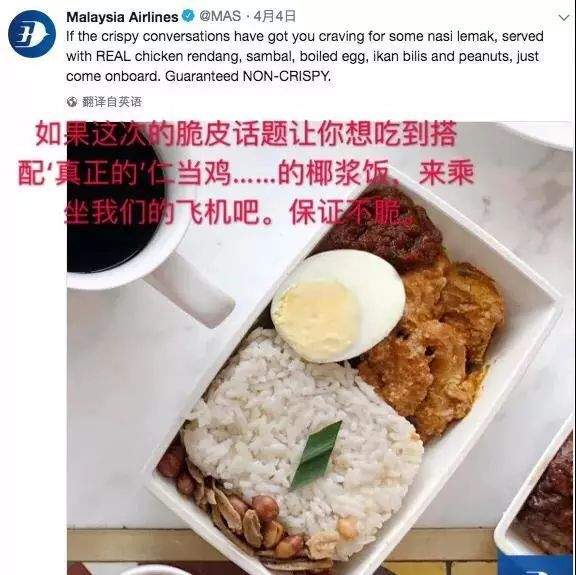 馬航也趁機跑出來安利自家“不脆”的仁當雞飛機餐。