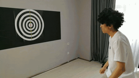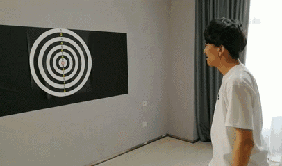 【實驗過程】這個實驗採取積分制。首先在牆上畫出靶,隨後我將站在3個不同的位置,利用頭球打靶。如圖所示