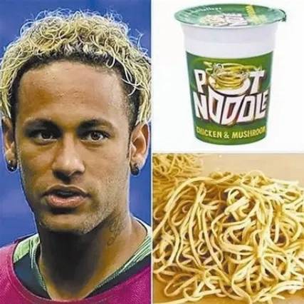 在與瑞士對戰的那一場,內馬爾頂着這碗泡麪來去自如,成功激起了對方球員的飢餓感,使得瑞士人爭相搶奪以至於10次對內馬爾犯規。顯然,巴西教練的這一發型設計是成功的。