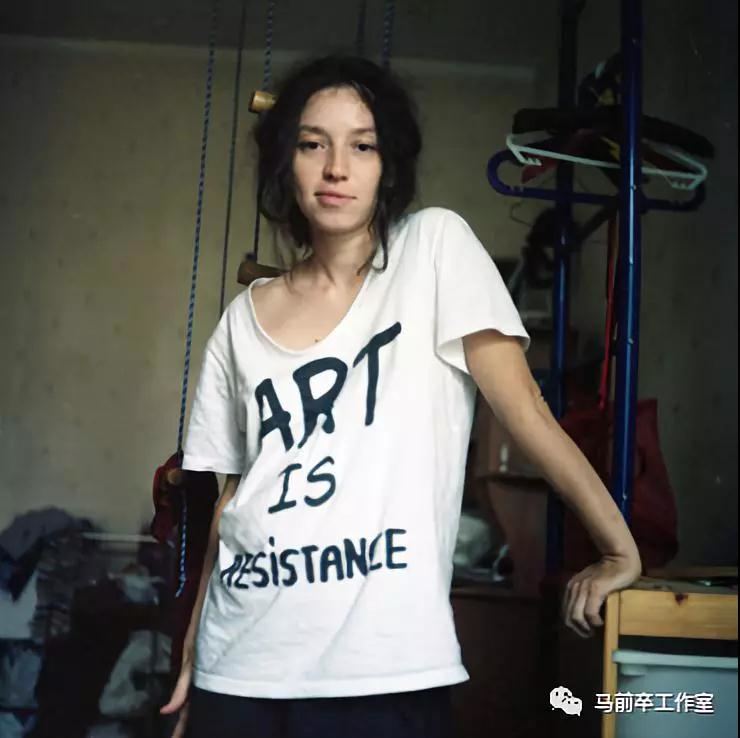 Voina的創始人之一,莫斯科大學物理學博士Natalia Sokol,身上T恤上印字樣為“ART IS RESISTANCE(藝術就是抗爭)”。