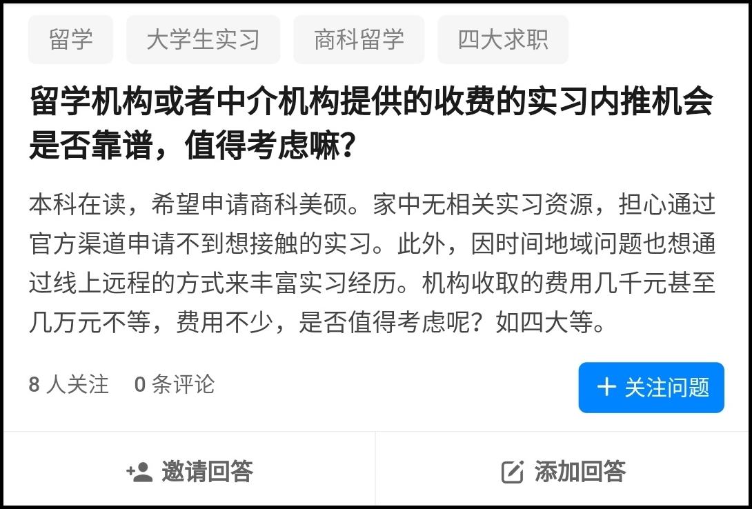 從網絡上的發言我們也能看到,確實有不少大學生認為自己不夠優秀,家裏又沒有相關資源,糾結是否要“買”一個實習機會。