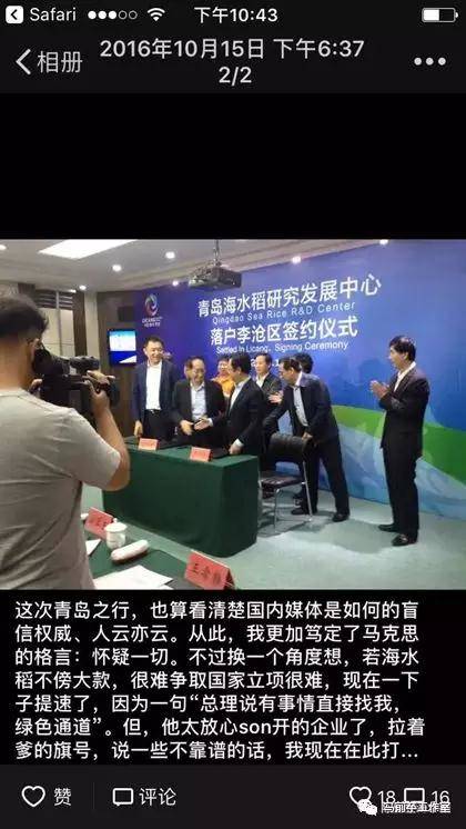 “陳日勝海水稻”公號公佈的對青島研發中心的質疑
