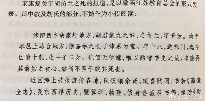 1907年4月,光緒三十三年三月,江蘇沐陽縣女子胡仿蘭被公婆逼迫服毒身亡,這一案件如果不是正碰上“三千年來未有之大變局”,傳統倫理體系都被質疑,也會像無數類似冤案一樣沉入歷史河底,無人知曉,唯一的幸運就在於當時媒體干預此事(有種熟悉感)。
