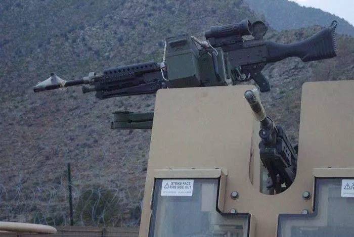 ▲伊拉克戰爭中,槍口“戴套**”的車載機槍**