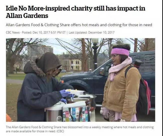 在多倫多市中心的艾倫花園裏,有一個每週日給無家可歸者發熱騰騰的食物和衣服的地方。