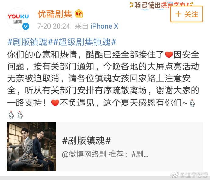 然後優酷官方,先是胡亂組織活動,等到因為安全原因被取消,就反手一鍋“接有關部門通知,無奈被迫取消”。