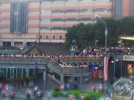 現場的鎮魂女孩感覺整個天橋都在震,而且兩邊的天橋和商城門口全都被包圍了: