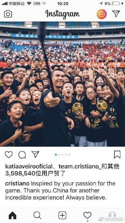 世界盃期間的逆天戴帽,讓C羅再次圈粉無數。他的帽子戲法,把葡萄牙整支球隊扛在肩上讓球迷大呼過癮,這是本屆世界盃為數不多的個人英雄主義時刻。在那一夜,又有無數球迷因為C羅愛上足球。而轉會尤文圖斯,更是讓他的粉絲基數變大。在這種情況下,C羅表現的極為模範,中國行期間始終開心的不行。