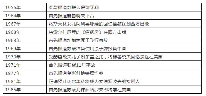 Victor Louis出生於莫斯科,是蘇聯公民,他在1956年成為CBS記者,之後跳槽到倫敦晚報。之後他一直以倫敦晚報駐莫斯科記者的身份活動,被稱為“西方新聞報道在莫斯科的主要來源”。只要把他首發的蘇聯新聞列個表,大家就能理解此人絕非普通蘇聯公民了: