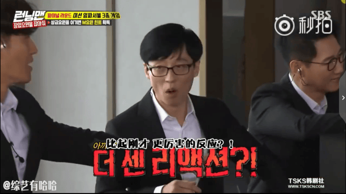 主MC劉在石又一次適時地引導氣氛:得小心一點,一點……