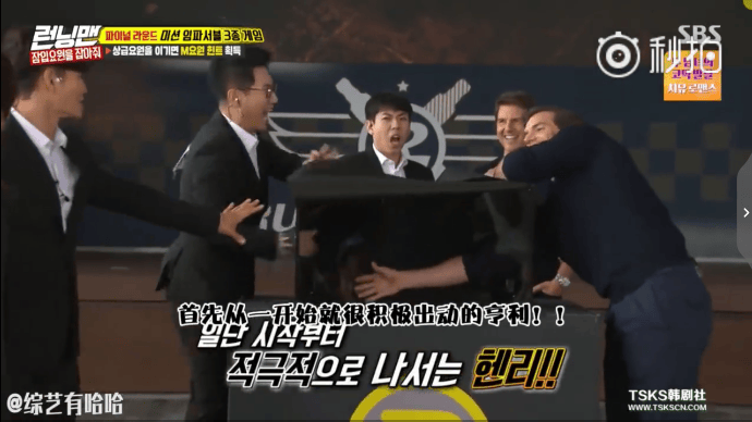 最近,《碟中諜6》的三位主演型男“阿湯哥”湯姆·克魯斯(Tom Cruise)、亨利·卡維爾(Henry Cavill)、西蒙·佩吉(Simon Pegg)就來到韓國“國民綜藝”《Running Man》上宣傳影片。