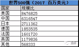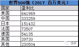 以2017年數據為例,世界500強企業裏面,美國數量上佔比是26%,但他規模(總營收)佔比則是37%,淨利潤佔比,更是恐怖的42%!