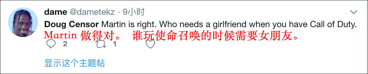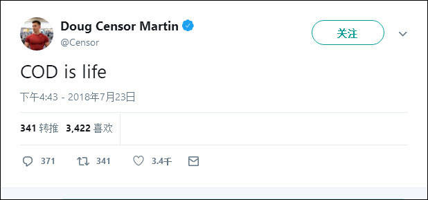 Martin再次發推稱“使命召喚”才是生命,並説自己會永遠記住這段快樂的時光。