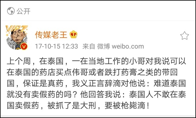 另外,泰國對於假藥的打擊力度也沒有大家想象中的大,光是判死刑這一條就特別唬人了。因為上個月18日,泰國一法院才剛判決一位搶劫及故意殺人的犯人死刑,這是泰國時隔九年執行死刑。在2009年那一年,被處以死刑的也不過兩人,從未聽聞過有人因為售賣假藥而獲死刑的。