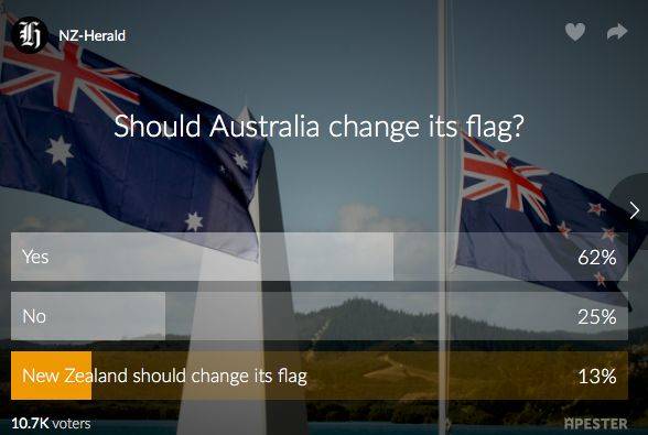 對於温斯頓要求鄰居更換國旗的提議,新西蘭網友們62%投了贊成票。