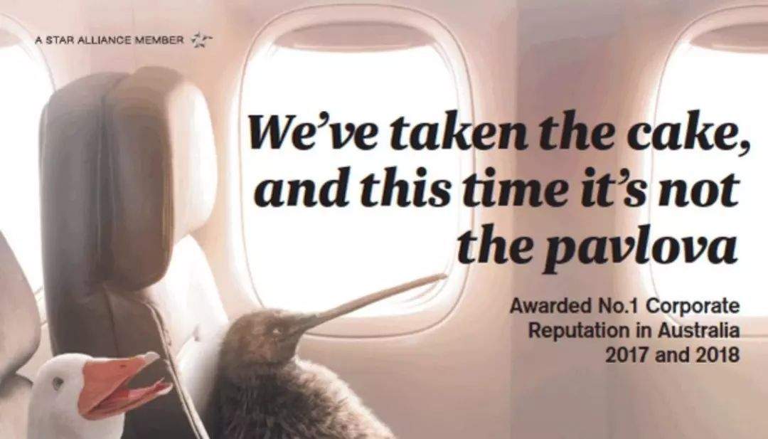 這不,新西蘭航空Air New Zealand竟然在2017年和2018年,兩年蟬聯澳大利亞聲譽最高的企業(Australia’s most reputable company)。