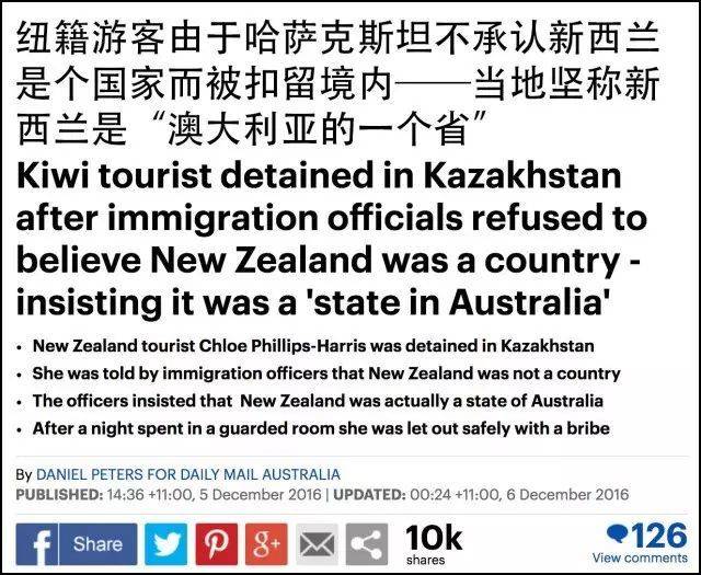 這樣的誤解還曾真實發生並被媒體廣泛報道,圖中的這個來自新西蘭的妹子叫Chloe Phillips-Harris,她經常到中亞地區旅行。去年,當Chloe前往哈薩克斯坦遊玩時,海關人員告知她必須出示澳大利亞護照才能入關。