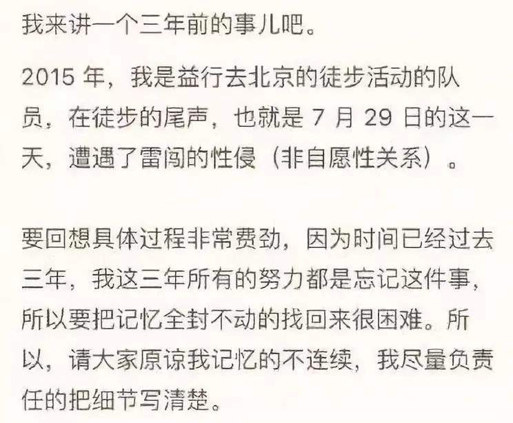 “雷闖性侵”作為最近一系列性騷擾案件的領頭羊,受害者趙欣在騷擾發生三年之後才站出來發聲。即便她用一篇長文詳細描述了當時的情況,但結果可能不容樂觀。畢竟都是三年前的事情了,相關的證據早已經煙消雲散了。