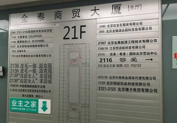 檢索張洺豪擔任法人的公司中,一家註冊地址位於北京豐台果園小區的投資公司頗為奇怪,該公司名為北京仲頤金泰投資管理有限公司(下稱“仲頤金泰”),註冊資本1000萬元,社保信息卻為0。界面新聞按註冊地址走訪發現,該公司所在的金泰大廈21層並沒有這家公司蹤跡,其所在的2117實際上是一家服裝公司,該服裝公司稱,從未聽説過仲頤金泰公司在這裏出現。