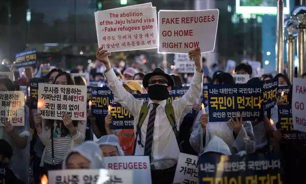 這些滯留在濟州島的尋求庇護者,已經在韓國引起軒然大波——與美國和歐洲的移民政策紛爭遙相呼應。一個堅決反對他們留下的組織發佈宣傳海報,稱這些也門人是“假難民”,並要求他們“滾開”。在過去15天,一份呼籲政府將他們“打發走”的網上請願書已經徵集了超過50萬個簽名。